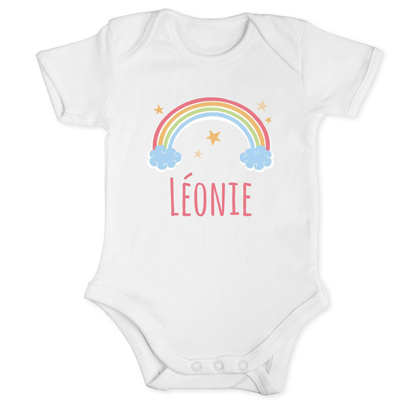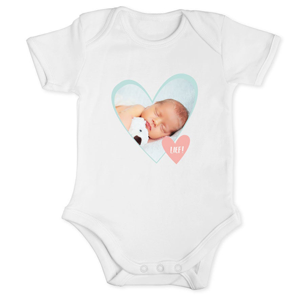 Wit rompertje met korte mouwen voor baby's. Ontwerp de praktische peuter basic voor uw klanten: als cadeau voor een doop, eerste verjaardag of als souvenir voor een baby shower party.